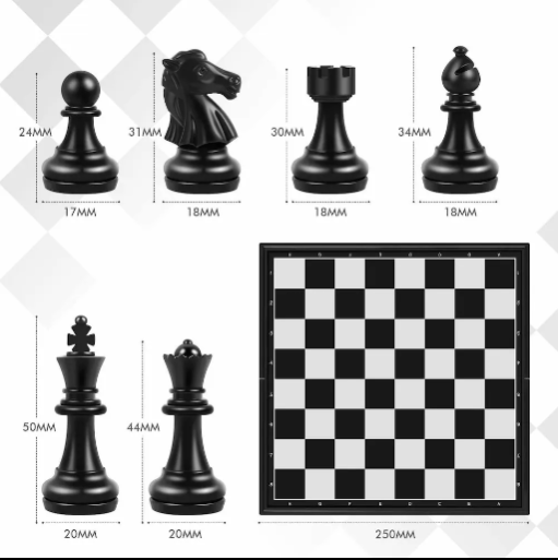 A Wooden Chess set typically consists of a board and 32 pieces crafted from wood, often maple, walnut, or rosewood, known for its durability and aesthetic appeal. The board features alternating light and dark squares, usually inlaid or carved for a smooth playing surface. The pieces are intricately carved and weighted for stability during play, with kings standing around 3 to 4 inches tall. Wooden Chess sets are prized for their craftsmanship and are popular among both casual players and collectors alike.